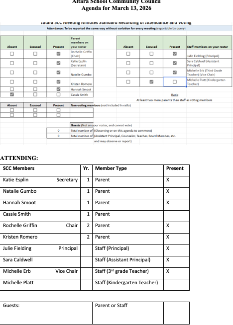 • Goals will remain the same as we have discussed.Motion to approve Michelle Erb, Second by Rochelle Griffin. All in favor