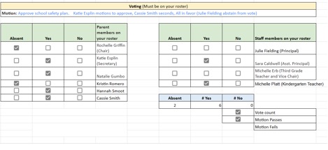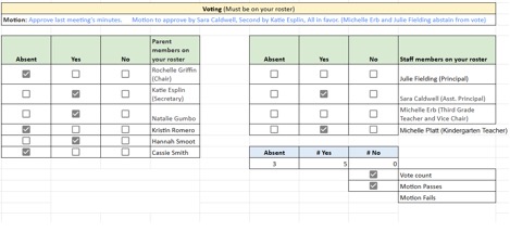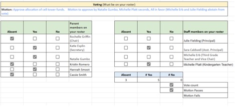 - Abstaining from vote Michelle Erb and Julie Fielding